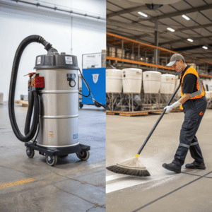 Industrial vacuum cleaners are more effective than sweeping because they trap dust and fine particles, improve air quality, and make large cleaning tasks faster and more thorough.