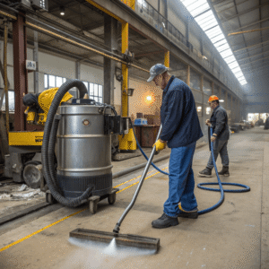 Factories and warehouses use industrial vacuums for cleaning floors, collecting hazardous dust, removing liquids, and safely disposing of metal shavings and chemicals.